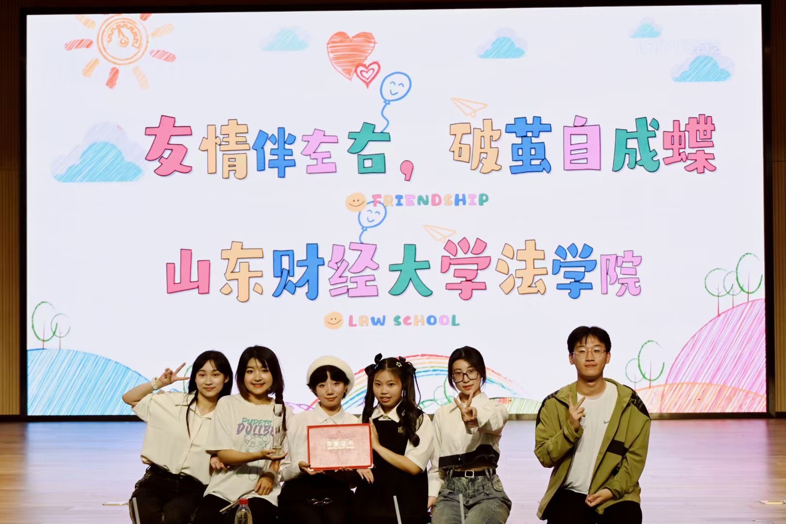 我院参加决赛的学生团队由2022级法学6班王楠作为导演,2022级法学2班周浩宇作为编剧,2022级法学6班柯懿宸,2022级法学3班迟雨诺、戴小梅、陆梦媛共同参演。经过激烈的角逐,他们的作品《“友”情伴左右,破茧自成蝶》获得校赛一等奖。