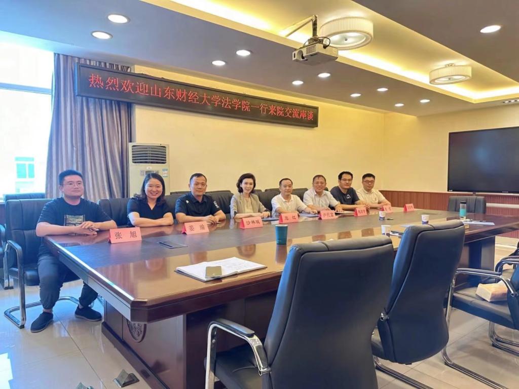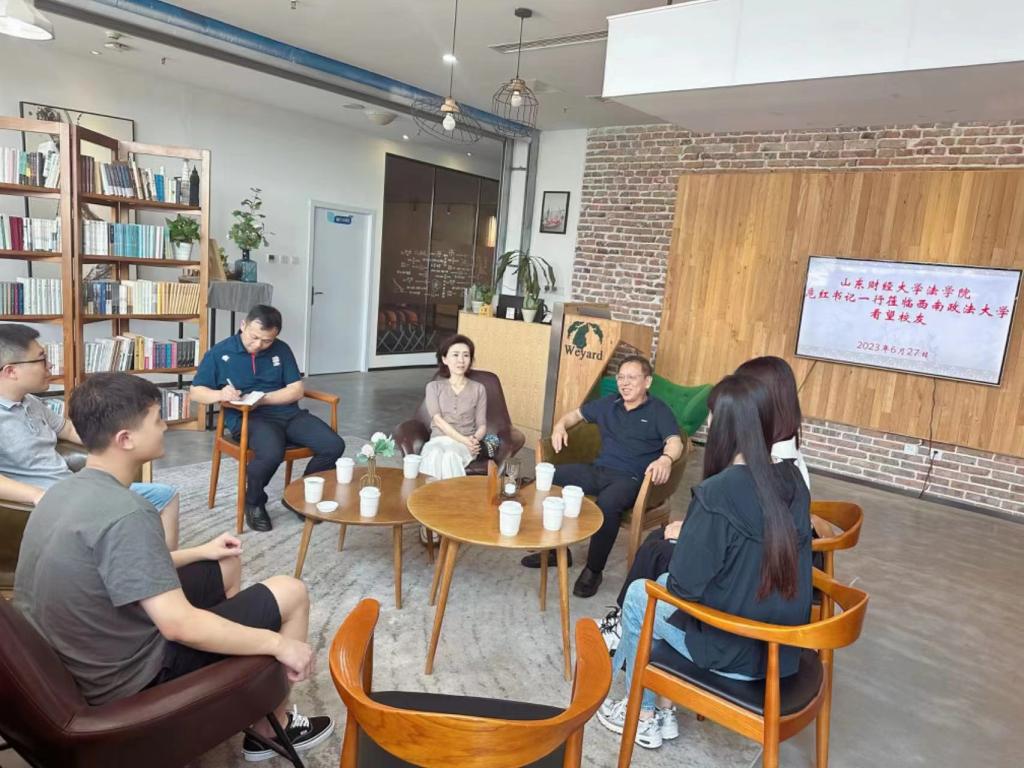 詹伟对山东财经大学法学院一行来访表示热烈欢迎。双方围绕党建工作开展、法学教育发展趋势、教学方法、学生培养、校际合作、科研项目、人才培养、国际交流与合作等方面进行了交流讨论。