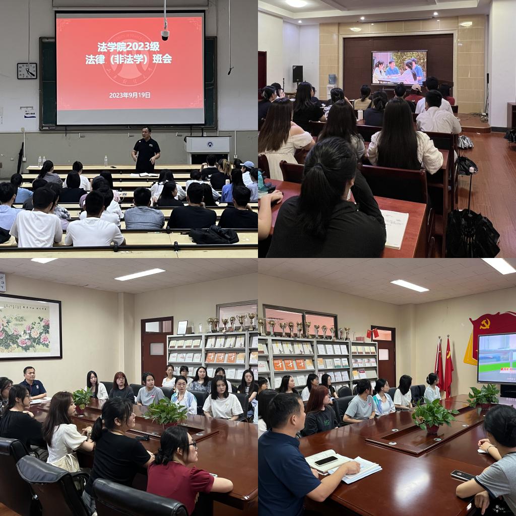 9月18日-19日,法学院在教学楼1101和学院会议室分别召开了2023级研究生新生第一次班会。本次班会由辅导员沙林斌老师主持,全体新生参加。