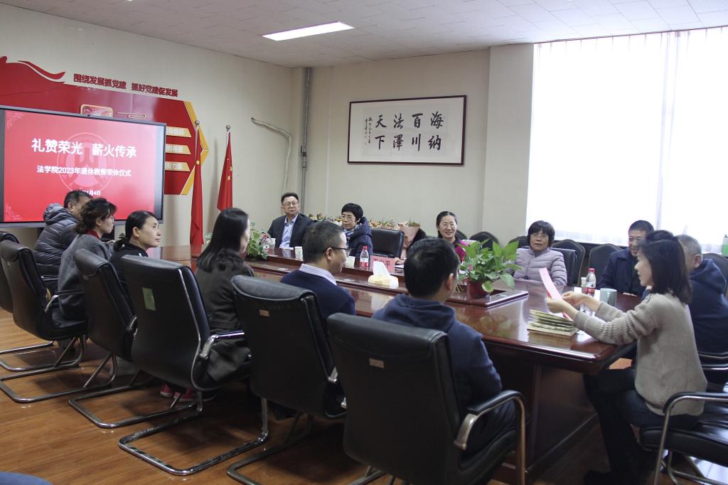为表达对教师的关怀、关爱,对教师职业生涯奉献的感谢,增强教师职业荣誉感、认同感、归属感,2024年1月4日下午,我院举行2023年退休教师荣休仪式。退休教师闫宝龙、王春婕、何翠凤、于忠翔受邀参加仪式,离退休工作处党委书记于光平、学院党委书记危红、院长赵信会、党委副书记田军、沙林斌、学院副院长王莉莉、学院工会主席李同武、学院工会副主席赵晗以及各系教师代表、青年教师代表共同见证了这一光荣时刻。