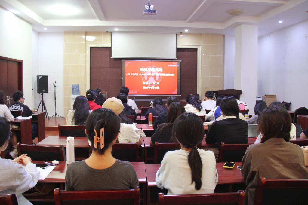 会上,危红为学院全体党员上以“学《条例》守党纪,内化为日用而不觉的言行准则”为题的专题纪律党课。危红强调,党纪是党的生命线,是维护党的团结统一、保持党的先进性和纯洁性的重要保障。全体党员必须深刻认识到学习党纪条规是自身职责所在,也是提升自身素质、发挥党员先锋模范作用的关键所在。此外,危红结合具体案例,详细解读了新修订的《中国共产党纪律处分条例》的主要内容并强调党员要全面把握条例的丰富内涵和实践要求,深刻理解党的纪律建设的总体要求,将条例中的原则理念、主旨要义内化于心、外化于行。