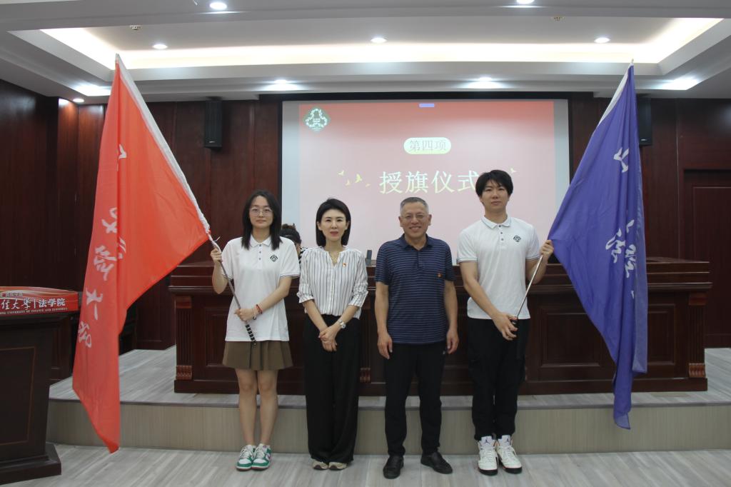 随着庄严的国歌响起,仪式拉开了序幕,全体师生肃立,齐唱国歌。副院长王莉莉宣读参加本次实习的同学名单,通过报名选拔,我院共有73名学生参与此次实习。其中,37人前往聊城市中级人民法院,36人前往聊城市检察院。学院党委书记危红、院长赵信会分别为两支实习团队授旗,实习学生代表肖铭轩、李泽宇接受实习出征旗帜。
