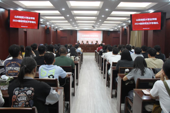 9月12日下午,法学院2024级研究生新生开学典礼在燕山校区模拟法庭举行。学院党委书记危红、院长赵信会、党委副书记沙林斌、副院长纪建文、副院长王莉莉、硕士生导师徐丽枝以及全体2024级研究生新生共同出席典礼。典礼由党委副书记沙林斌主持。
