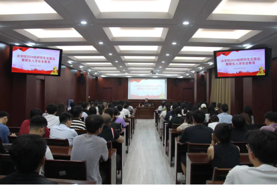 8月30日晚,法学院2024级研究生新生见面会暨入学教育在燕山校区模拟法庭举行,我院全体2024届研究生新生参加此次见面会,本次见面会由法学院党委副书记沙林斌主持。沙林斌从思政教育、日常管理、心理健康、学业规划等多个方面进行了新生入学教育,旨在帮助大家更快地适应新生活,引导大家树立正确的价值观,合理规划自己的研究生生活,度过一个充实美满的硕士生涯。