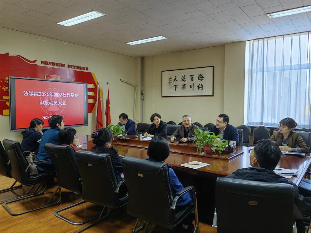 11月7日下午,法学院于4508会议室召开2025年度国家社科基金申报动员大会,传达学校科研工作暨国家“两金”项目申报启动会的会议精神和洪俊杰校长在会议上的重要讲话,对法学院2025年国社科申报工作进行部署。会议由法学院院长赵信会主持,张琳院长做申报动员。