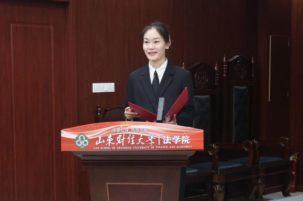 社团代表孙裕彤、法学院第二届科研立项获得者张文馨作为学生代表发言。作为初涉法制边缘并对未来事业满怀热忱的法学学子,她们号召全体同学勤勉学习,脚踏实地,勇于创新,立志做从事法律工作的新时代有为青年。