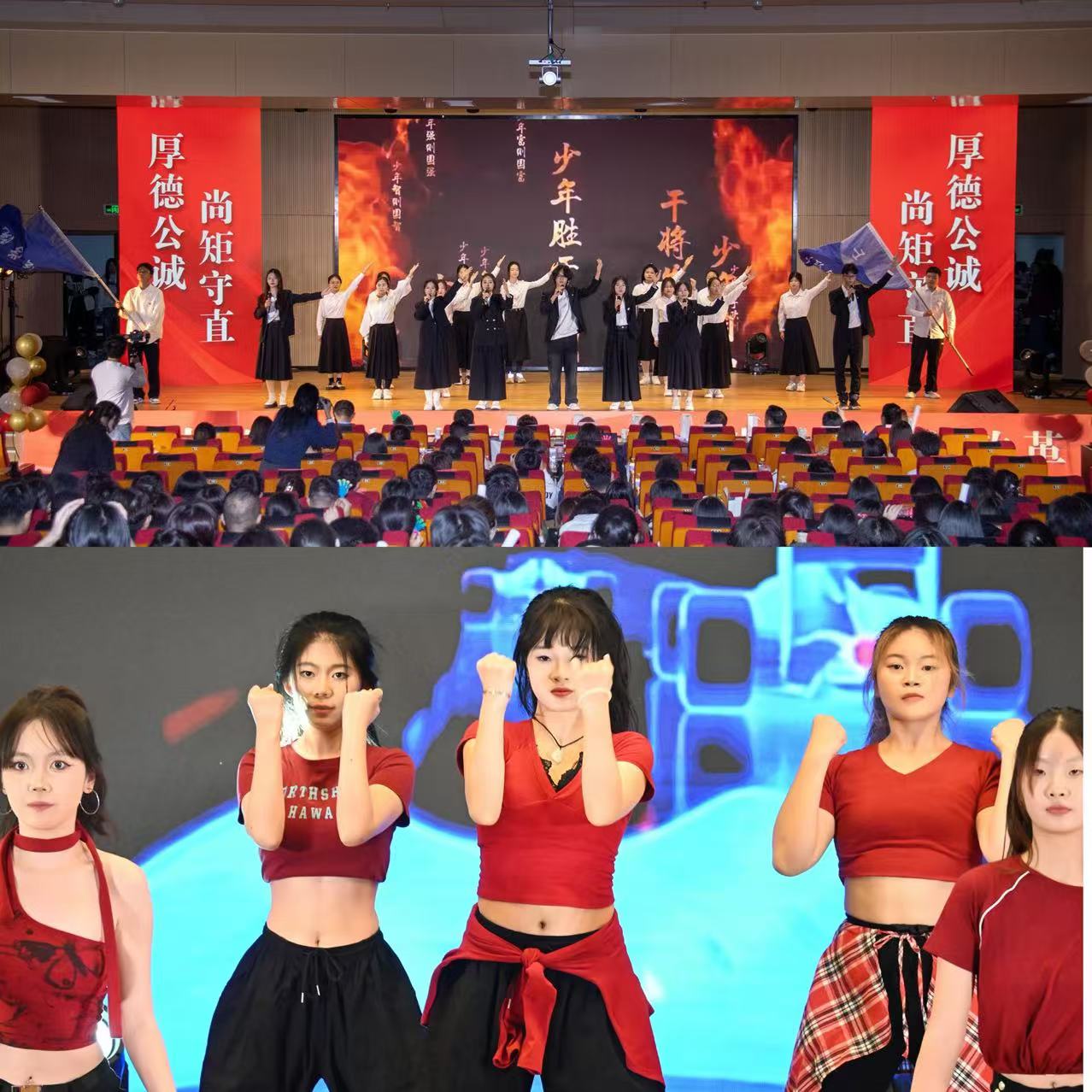 晚会的第一篇章在充满活力的舞蹈《Power》中拉开序幕,法学院学子们以饱满的热情展现了他们的青春魅力。诗朗诵《少年中国说》以其慷慨激昂的语调,深情地诉说着对国家的热爱与对未来的憧憬,学院学子们用他们饱满的情感与坚定的声音,将这份家国情怀演绎得淋漓尽致,赢得了现场观众的深切共鸣与热烈掌声。歌曲《蒲公英与稻香》以其清新脱俗的旋律与真挚动人的歌词,展现了法学院学子们内心的柔软与对生活的热爱,他们用歌声诉说着对美好未来的向往与追求。