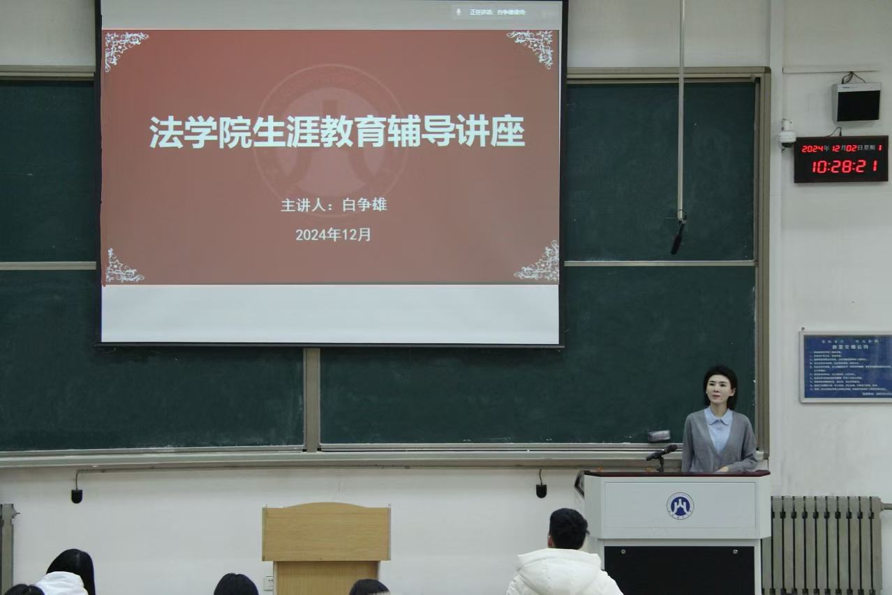 12月2日上午,法学院在燕山校区举办生涯教育辅导讲座。本次讲座特邀我校2007届优秀校友——浙江靖霖(绍兴)律师事务所主任、绍兴市律协刑委会副主任白争雄担任主讲嘉宾,讲座由法学院党委书记危红主持,23级本科生参加。
