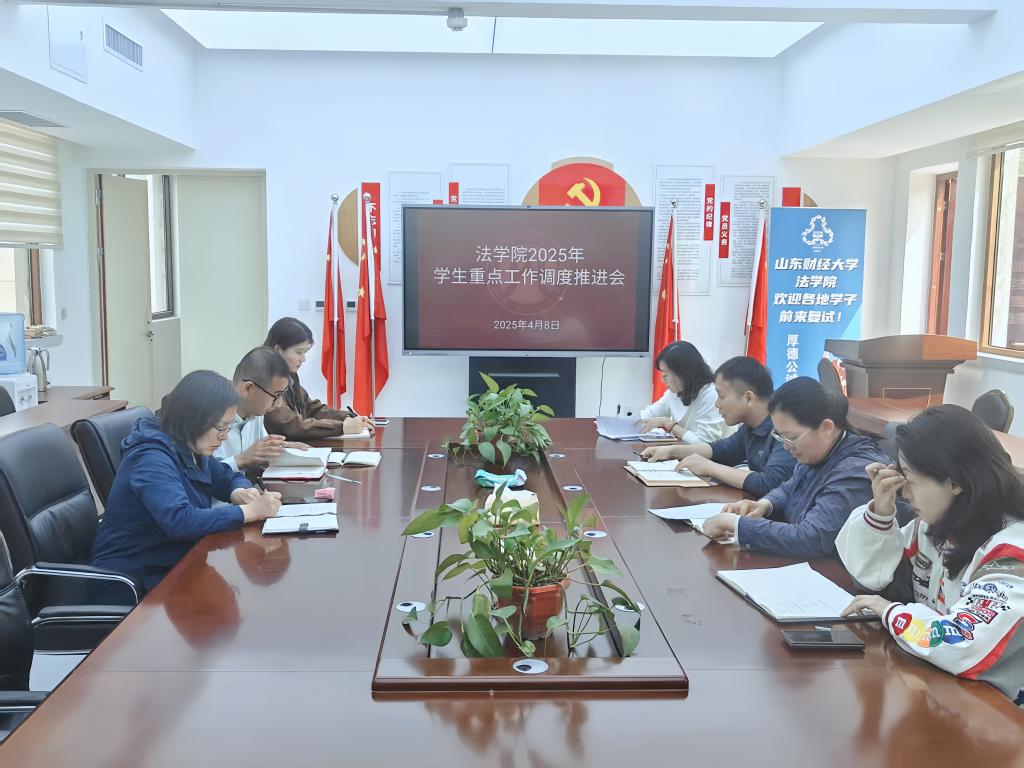 4月8日,法学院于燕山校区6号教学楼325会议室召开2025年学生重点工作调度推进会,学院党委副书记陶晓华、沙林斌及全体辅导员参加会议。