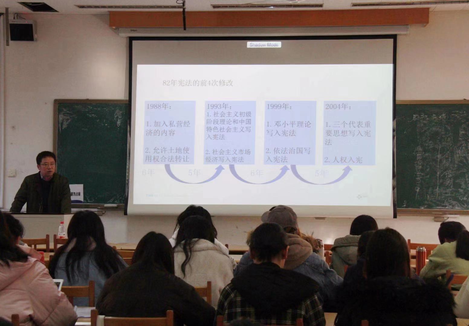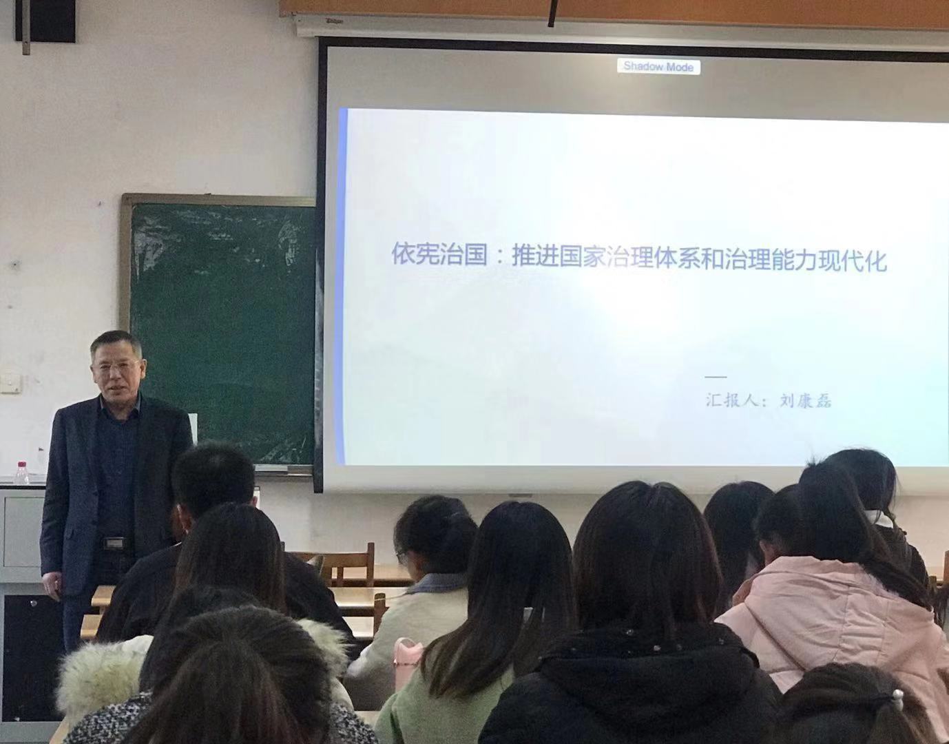 以依宪治国为中心,刘康磊博士追溯宪法发展历史,介绍了共和国宪法的设立和完善历程。随后,他结合新时代伟大复兴的时代使命,强调了宪法对于我国建设法制强国的重要性。接着,本着理论结合实践的原则,刘康磊向同学们介绍了依宪治国理念和相关国家法制治理的具体方法。讲座过程中,同学们随着刘康磊层层推进的讲解深入了解新时代法制建设,获益匪浅。最后,赵信会总结发言,进一步升华了讲座主题。
