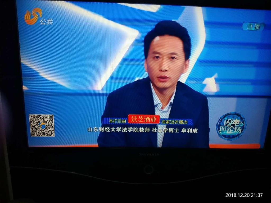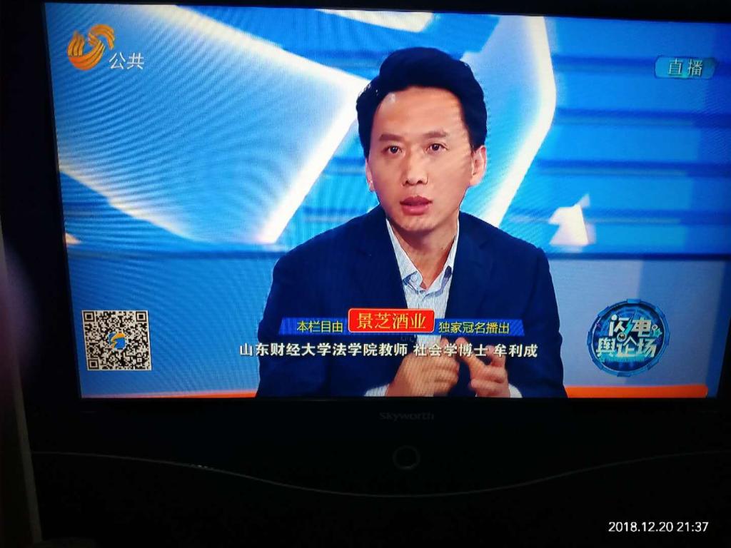 山东财经大学法学院牟利成老师被山东电视台公共频道,“闪电舆论场”节目邀请为长期嘉宾,对社会热点问题、事件和话题进行点评并发表意见。2018年12月20日,牟利成老师做客“闪电舆论场”结合“苏州2元进站”事件,针对“我们是否应该对‘小事’‘较真’”这一主题发表了自己的看法。