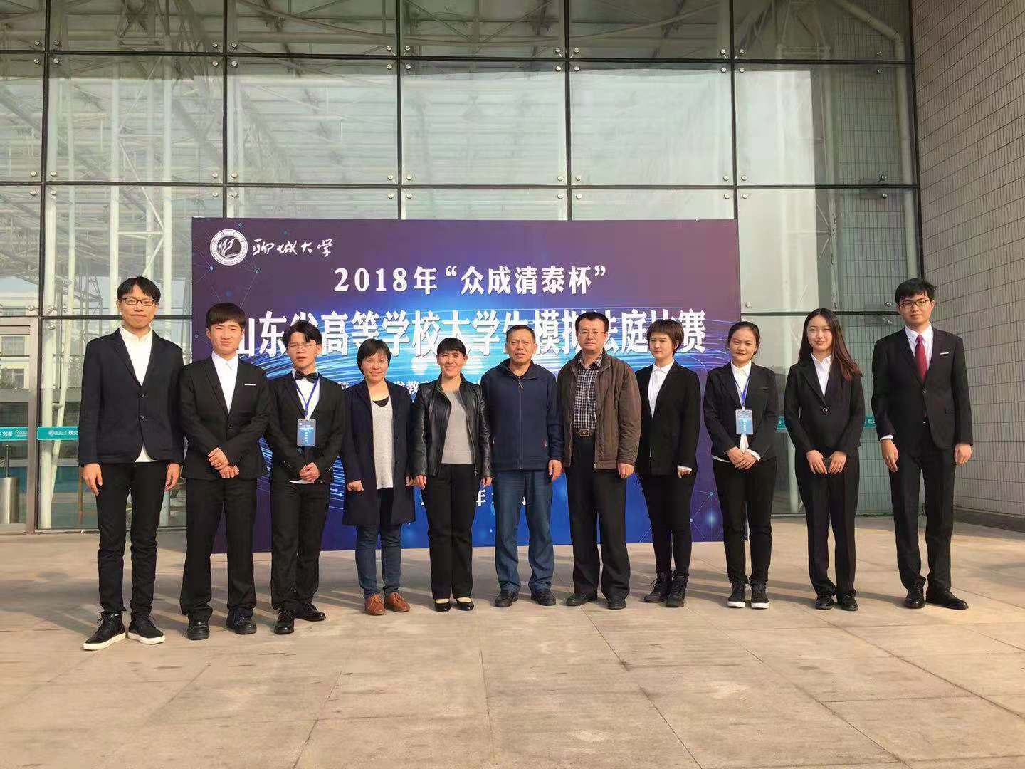 11月3日至4日,2018年“众成清泰”杯山东省高等大学生模拟法庭比赛在聊城大学举行。我院组队代表学校参加本届比赛,从33支参赛队伍中脱颖而出,以第五名的成绩入围八强,最终获得团体二等奖,王宁宁同学获优秀辩手称号,副院长李震老师、刑法学系主任吕欣老师获优秀指导教师称号。