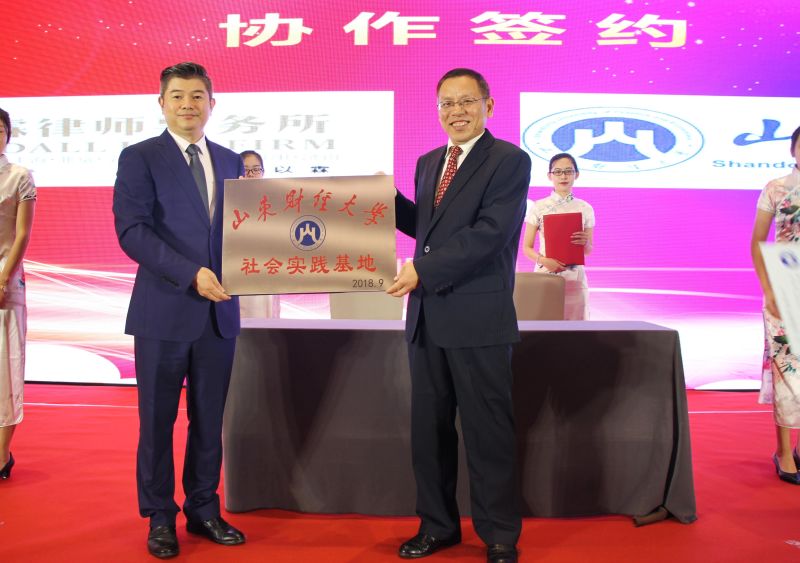 我院与浙江靖霖律师事务所全面战略合作协议签署仪式以及浙江靖霖律师事务所济南所成立仪式,于2018年9月16日在济南市鲁商国奥城银座颐庭大酒店举行。我院党委书记邵文涛教授、院长赵信会教授,合作发展处刘奇耀处长、邵伟然副处长出席了签约仪式。院长赵信会教授代表学院与浙江靖霖律师事务所签订协议,向对方交授“山东财经大学社会实践基地”的牌子,并接受其向学院捐赠的50万元经费,用于支持我院学科发展。双方随后成立了“金融犯罪研究中心”,刘奇耀处长和邵文涛书记为研究中心的成立揭牌。最后双方共同举办了“金融犯罪的辩护与防范”的刑辩论坛,我院施锐利教授在论坛的第一单元——金融犯罪的特点中做了精彩发言,得到了与会专家学者、律师朋友的一致好评。