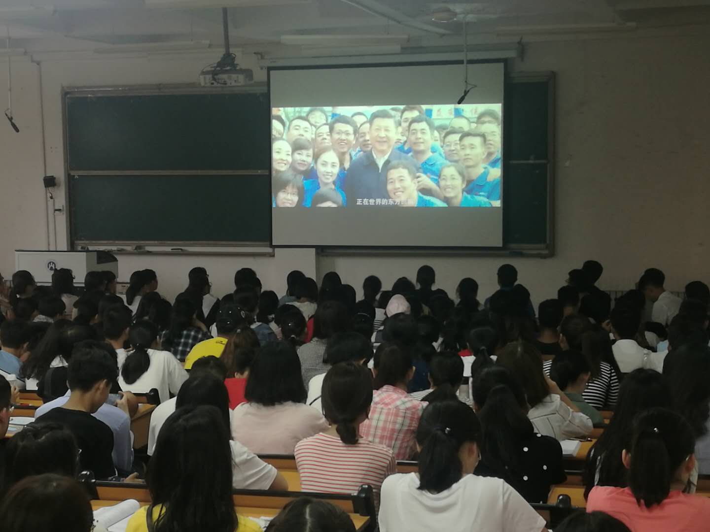 9月13日下午,辅导员赵金鹏老师组织18级新生通过朗读形式集体学习《学生手册》,让新生们进一步了解学校的规章制度,适应校园学习生活。然后,新生集体观看了影片《厉害了我的国》,通过影片中展现的新时代中国发生的一件件大事、一个个优秀人物、一项项重要成就,让新生们提升对祖国的自豪感和荣誉感,提醒新时代的青年不忘初心、牢记使命、奋发学习、报效祖国。