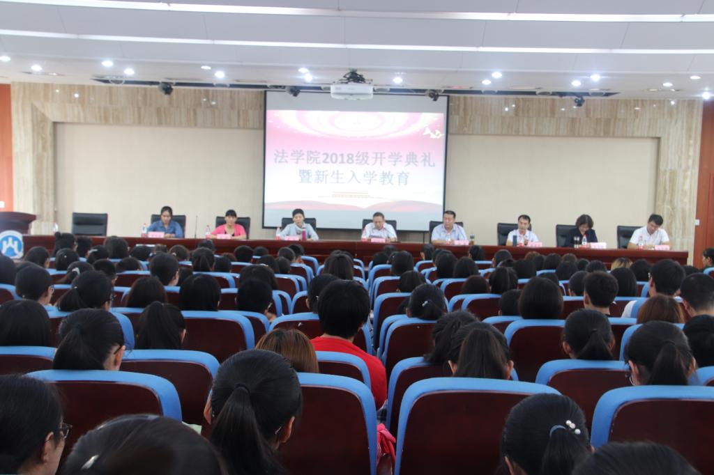 9月10日上午,法学院2018级开学典礼暨新生入学教育大会在圣井校区B5101室隆重举行。学院领导班子成员、教师代表、学生辅导员出席大会。院长赵信会致词,他代表学院欢迎2018级新同学的到来,并介绍了法学院的办学历史、学科建设以及人才培养情况。他寄语2018级新生珍惜大学殿堂深造的机会,立足新起点,迎接新挑战。教师代表范春莹结合个人经历与教学经验给新生们提出了学习、生活等方面建议,希望新生们尽早适应新环境,学会独立学习和生活。