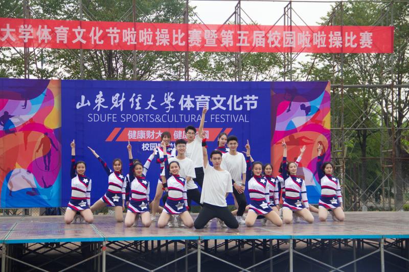 4月27日,山东财经大学体育文化节啦啦操比赛暨第五届校园啦啦操比赛在圣井校区操场成功举办,法学院啦啦操队以9.7分的高分荣获一等奖。本次大赛由学生工作部(处)、校团委、教务处主办、体育学院承办,啦啦操项目竞赛组、校学生会、啦啦操协会协办,各学院15支啦啦操代表队参赛。
