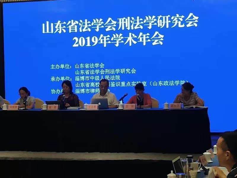 8月22至24日,山东省法学会刑法学研究会2019年学术年会在山东淄博隆重召开。本次年会由山东省法学会、山东省法学会刑法学研究会主办,淄博市中级人民法院、山东高校证据鉴识重点实验室(山东政法学院)承办,淄博市律师协会协办。来自山东省社科院、山东政法学院、山东大学、中国海洋大学、山东大学(威海)、山东财经大学、北京师范大学、潍坊学院、山东交通学院等高校的专家学者参加会议,同时参加会议的还有省人民检察院、省监狱管理局、济南军区直属军事检察院、广州市天河区人民法院、日照司法局、日照法学会、菏泽中院、栖霞市纪委监察委、淄博市法检系统等实务部门的专家。我院吕欣副教授及部分研究生代表受邀参加本次年会。