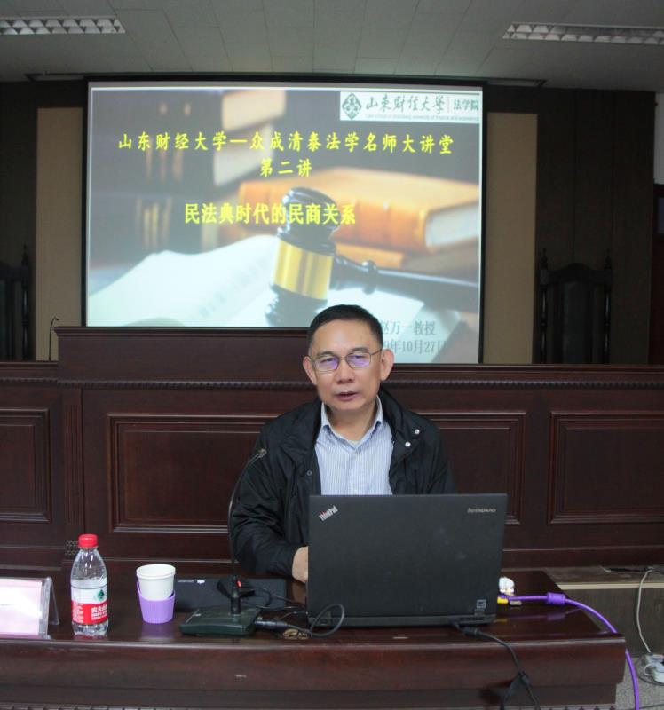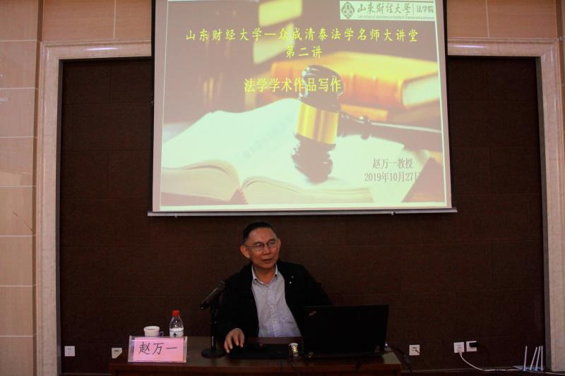 法学院成功举办了“山东财经大学——众成清泰法学名家大讲堂”第一讲之后,又于2019年10月27日延请我国著名民商法学家,西南政法大学民商法学科带头人,《现代法学》主编,博士生导师,中国法学会商法学研究会副会长、中国法学会法学期刊研究会副会长赵万一教授来法学院开展第二讲。