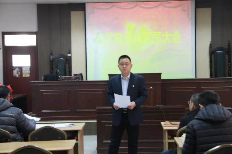 12月5日下午,法学院党委在学院模拟法庭召开全体教师党员大会。法学院党委书记邵文涛、院长赵信会以及法学院党委班子成员与法学院全体教师党员参加了会议。大会由邵文涛主持。