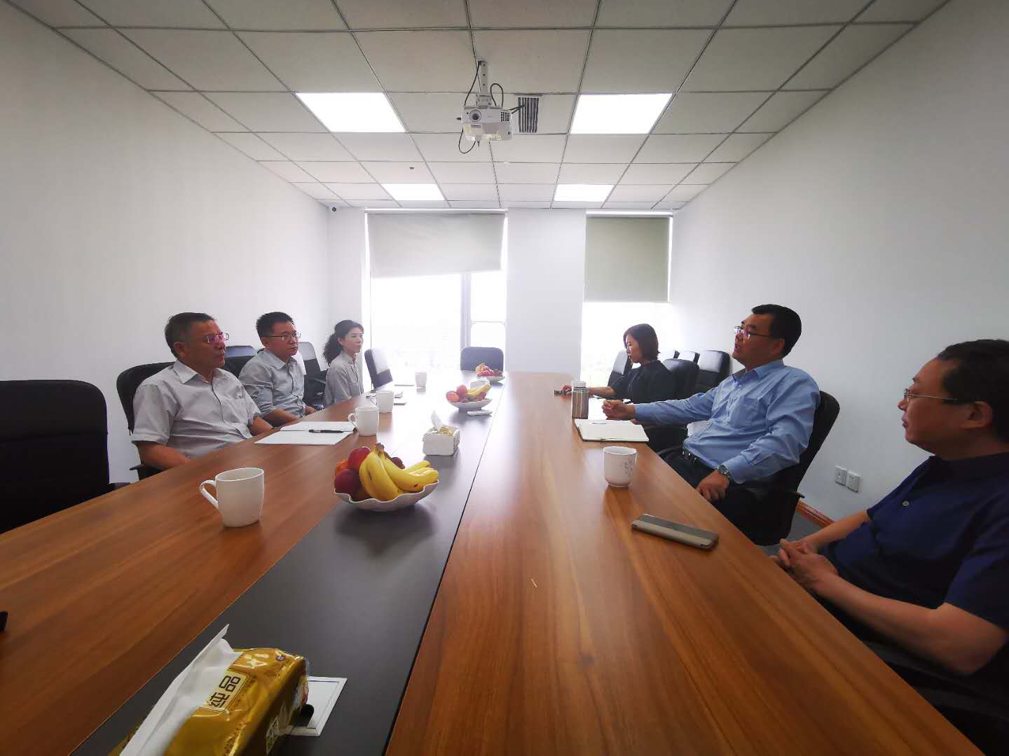 在随后的洽谈环节,李玉飞较为详细地介绍了上海兰迪律师事务所(济南)产生并逐渐发展的历史过程,全面展示了律师事务所业务开展情况,详细诠释了律师事务所的国际化、专业化、规模化的发展理念和发展目标,以及以国际上潜在的市场为导向有选择地设局布点、开展工作的近期规划。李玉飞的介绍也让考察调研的学院领导充分感受到上海兰迪律师事务所(济南)及其团队的创新担当意识以及团结奋进、拼搏奋斗的律所文化。赵信会代表学院向上海兰迪律师事务所(济南)的各位领导详细介绍了学院发展的方向:学院将努力依托学校的优势资源发展具有山东财经大学特色的法学学科,在实现学科发展的同时反哺、支撑学校优势学科的发展;学院将积极贯彻学校制定的服务地方经济社会发展、法治建设的方针政策,争取在地方经济社会发展法治建设中发出山东财经大学的声音,体现山东财经大学的智慧,为此,学院一直将理论联系实际作为学院发展的基本指导思想,谋求、强化与地方各级政府、司法机关、律师事务所、企事业单位的合作交流;学院将一如既往地以社会需要为导向调整法科人才培养方案,将专业、复合、交叉、特色作为人才培养的目标。近期,学院已经讨论通过了涉外经贸法律人才实验班、法律与经济实验班的培养方案。邵文涛则要求双方的合作必须立足现实实际情况并具有前瞻性,邵文涛还对上海兰迪律师事务所(济南)提出来的一些合作方案提出了个人的意见、建议。洽谈在友好、轻松的氛围中进行,通过洽谈双方一致认为有广阔的合作空间,并约定后续将对合作的具体内容、方案等进行沟通交流,力争早日签订战略合作协议,开展实质性的战略合作。