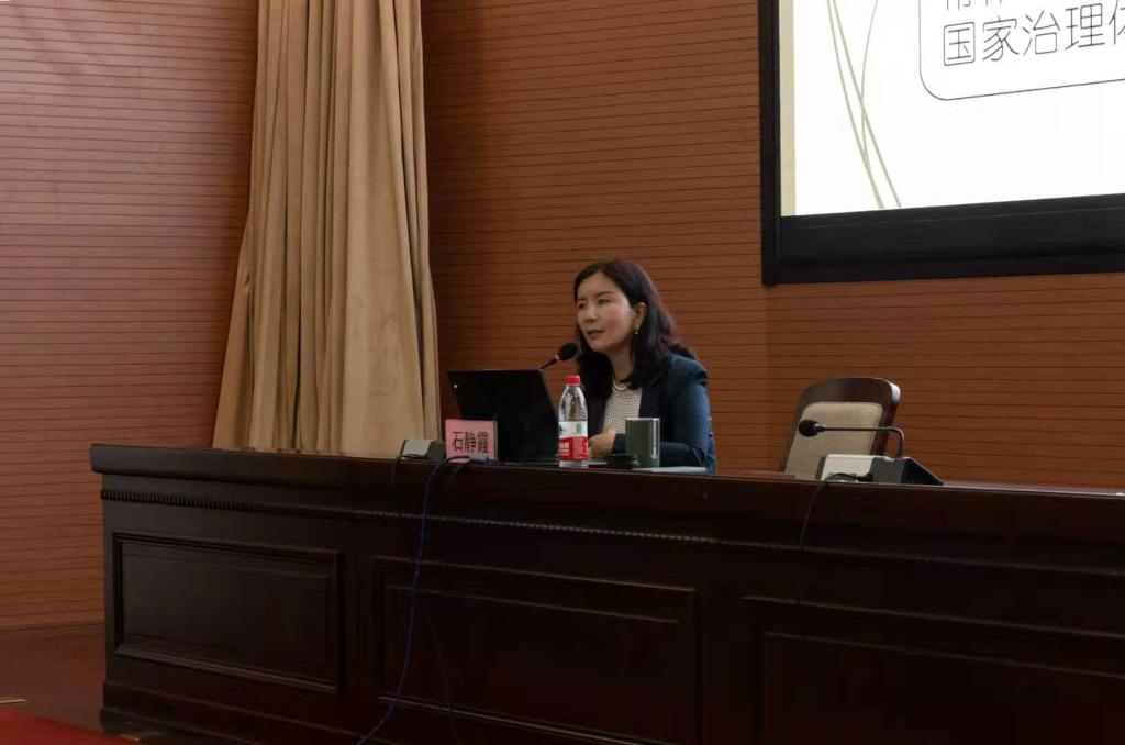 6月9日下午,中国人民大学法学院特聘石静霞教授做客“山东财经大学——靖霖法学公益大讲堂”,在燕山校区逸夫教学楼一层报告厅作了题为《习近平法治思想与我国商签国际经贸条约的新发展》的专题报告。法学院院长赵信会教授主持讲座,我院部分教师、研究生及本科生到场聆听,靖霖(济南)律师事务所给予了大力支持。