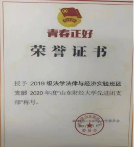王义铭获得2020山东财经大学辩协比赛一等奖;刁靖获得2021“山东财经大学杯”辩论赛季军;董自凡获2021年第十七届“挑战杯”全国大学生课外学术科技作品竞赛山东省二等奖、“挑战杯”红色专项活动校级特等奖、第七届中国国际“互联网+”大学生创新创业大赛山东省金奖、国家铜奖。“山东农担杯”齐鲁青年乡村振兴创新创业大赛山东省二等奖。