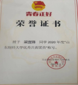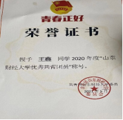 邢皓奎获2021年第七届全国大学生互联网+创新创业大赛山东省银奖;王一新获第六届山东省大学生就业挑战赛三等奖。
