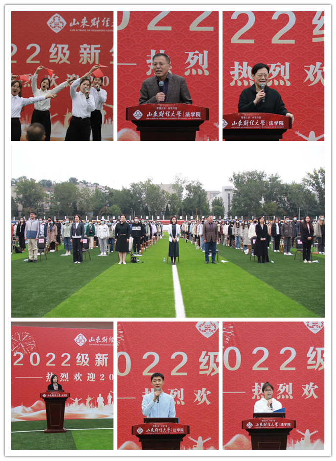 10月6日下午,法学院2022级新生开学典礼暨入学教育第一课在燕山校区操场隆重举行。学院党委书记危红、院长赵信会、副书记沙林斌、副院长纪建文、教师代表梁晓俭教授、2022级辅导员赵金鹏、校友代表周云粉出席典礼,2022级全体本科及研究生新生参加,典礼由副书记沙林斌主持。
