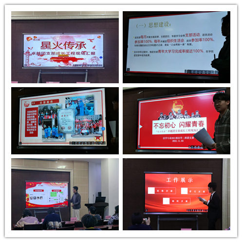 活动中,各班级团支部负责人全面总结了团支部组织架构、思想引领建设、落实“三会两制一课”、组织青年大学习等工作情况,并就下步工作计划进行了汇报。同时,结合自身工作实际,各团支部从不同的角度,讲解了各自的工作特色。有的团支部注重青年榜样的力量,激励团员青年发挥先锋模范作用;有的团支部侧重学风建设,在日常工作中注重引领团员青年参与学术活动,营造浓厚学习氛围;有的团支部创新活动形式,搭建平台鼓励团员青年参与校园迎新、核酸检测等志愿服务工作,让青春在奉献中绽放光芒。