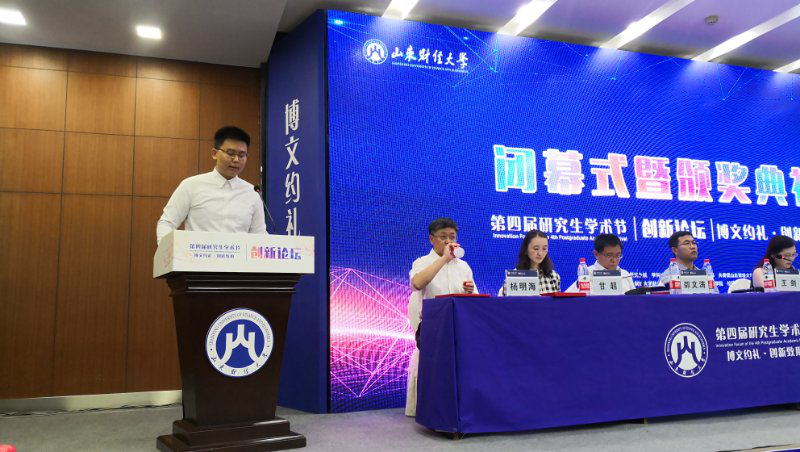 6月2日,山东财经大学第四届研究生创新论坛闭幕式暨研究生学术节颁奖典礼在我校燕山校区举办。在本届研究生学术节中,我院研究生荣获案例大赛一、二、三等奖各一项,2018级法律(法学)硕士张超作为研究生代表在闭幕式发言。本次大赛是由研究生院、学科建设办公室、党委学生工作部、校团委主办,财政税务学院、公共管理学院、法学院、校研究生会承办的一项全国性的研究生学术交流活动。