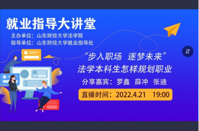 毕业季将近,2022届毕业生即将走出校门步入职场或是继续深造。为帮助法学本科生理清法学职业思路,明确未来的前进方向,4月21日晚,由法学院主办,校就业指导处指导的职业规划讲座顺利进行。本次活动我校特邀山东大学法学博士罗鑫律师及其律师团队就法学本科生怎样进行职业规划的问题做线上讲座,为学生提供切实有益的就业指导。