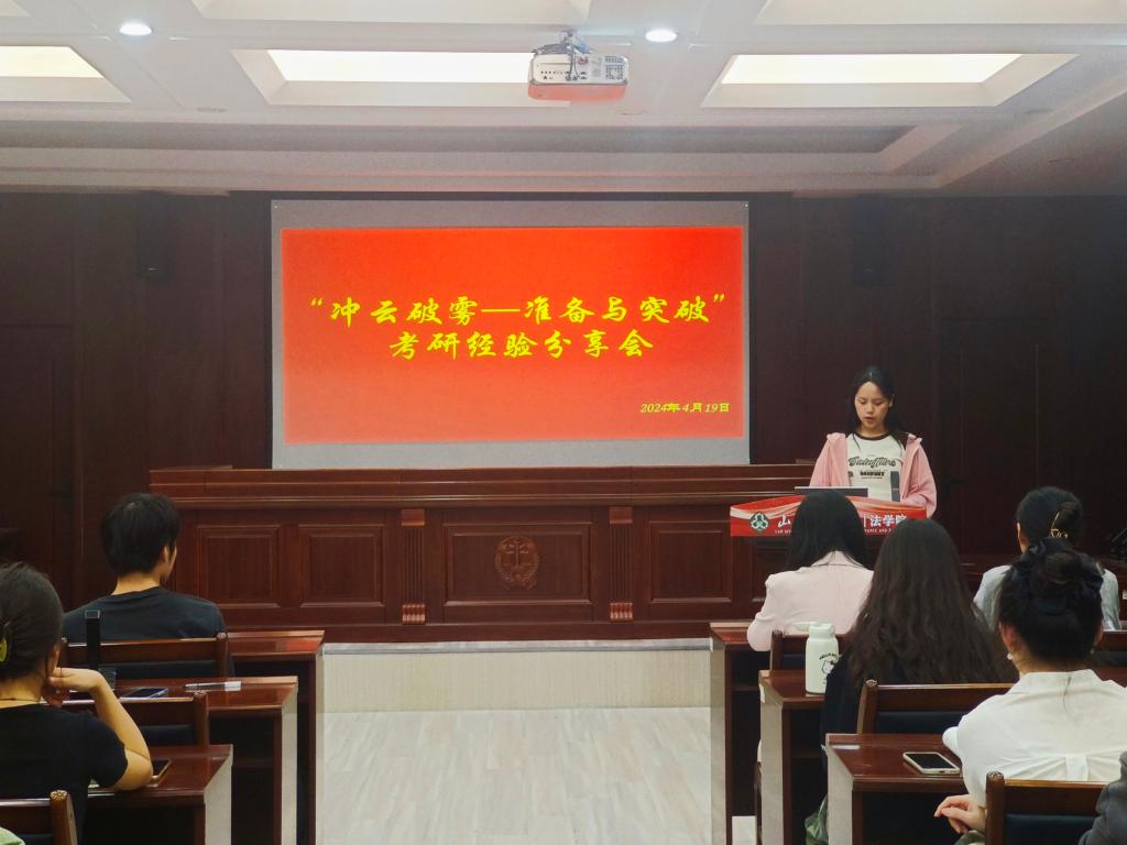 4月19日,法学院顺利在模拟法庭举办第一期考研经验分享会。本次会议邀请了我院24届刚刚顺利通过研究生考试的八位同学分享他们的备考及考试经验,为我院准备考研的大二大三的本科生答疑解惑。