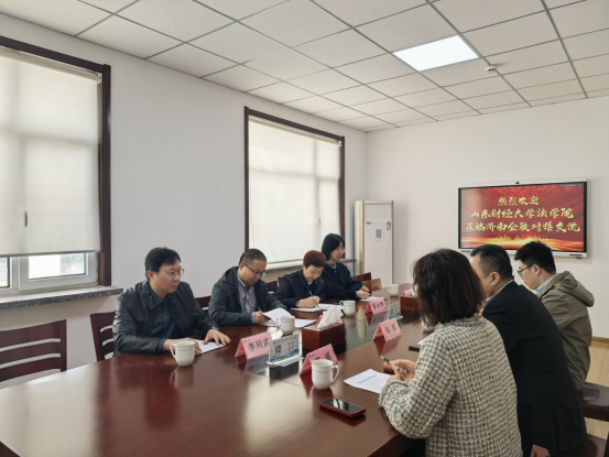 仪式最后,张锐与王仰光共同为“山东财经大学社会实践基地”揭牌。董云芳介绍了法学院社会工作专业的相关情况,并就下一步合作内容的具体落地实施路径,与在场人员展开积极而富有成效的探讨。