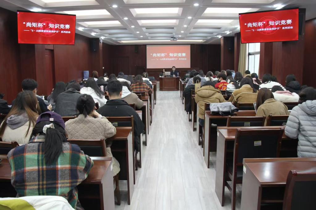 春和景明,法治同行。在第41个国际消费者权益日到来之际,山东财经大学法学院于3月15日在燕山校区模拟法庭举办“尚矩杯”3·15消费者权益日法律知识竞赛。活动由法学院研究生会举办,知识竞赛以“安全消费·法治护航”为主题,吸引了全院20支研究生代表队参与,活动旨在以赛促学,深化法治教育实践,助力青年学子提升专业能力。
