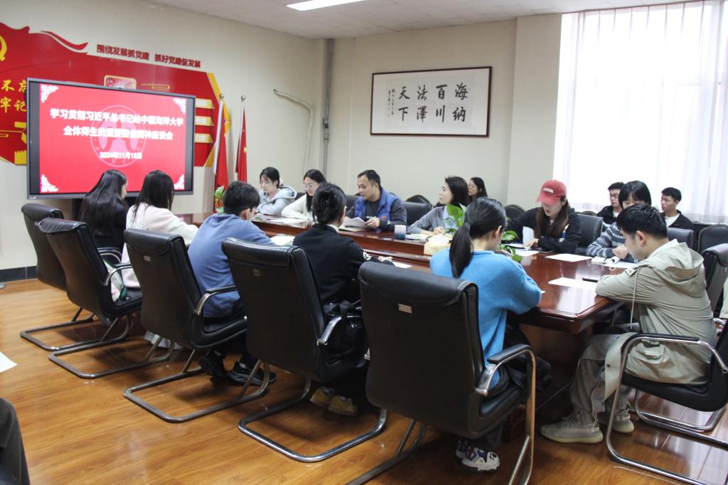 为深入学习贯彻习近平总书记给中国海洋大学全体师生的重要回信精神,切实将回信精神转化为青年党员、青年学生发展的不竭动力。11月15日下午,法学院在燕山校区4508会议室开展深入学习贯彻习近平总书记回信精神座谈会活动,学院党委书记危红、学院党委副书记沙林斌、学院党委专职组织员杨玉霜、青年博士教师代表吕明月、研究生第一支部党员参加活动。座谈会由沙林斌主持。