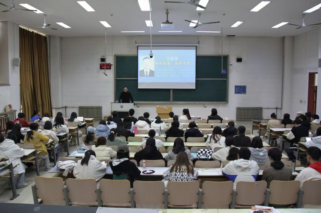 11月10日,法学院“成长·成才大讲堂”活动之“职业生涯规划”主题讲座在燕山校区逸夫楼302室举行,本次讲座特邀我校优秀校友——龙武(山东)教育科技集团董事长、山东省国际商会副会长王克功担任主讲嘉宾,讲座由法学院党委书记危红主持,23级本科生参加。