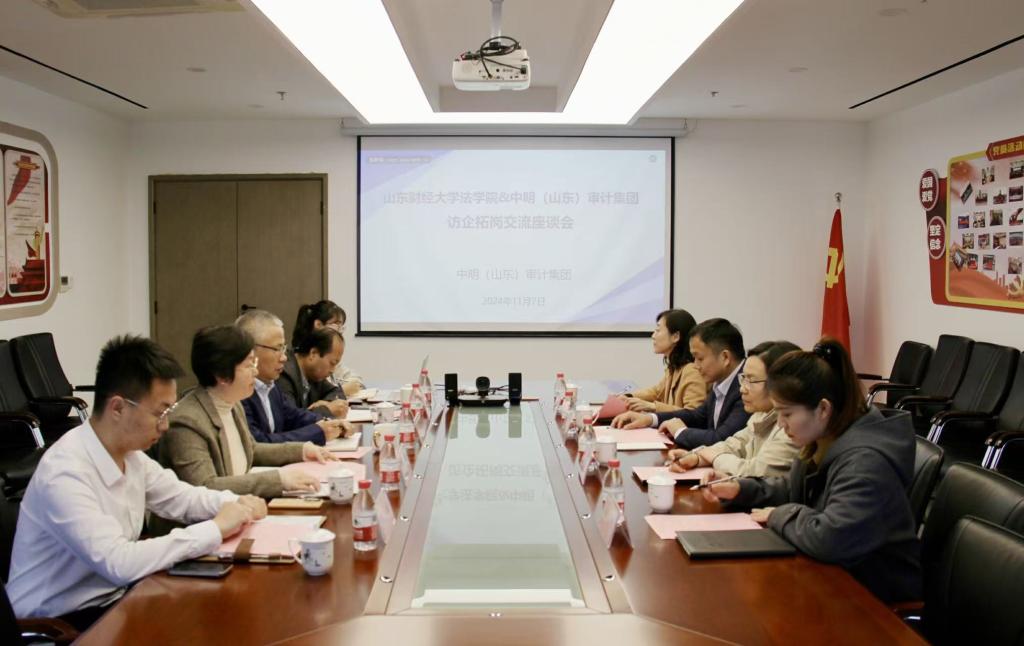 为贯彻落实教育部、省教育厅和我校关于开展高校“访企拓岗促就业”专项行动的工作部署和要求,为进一步提升专业人才培养质量,全面深化校企合作。11月7日,法学院党委副书记沙林斌、党委委员刘晓莉、就业办主任郭蕾和党委专职组织员杨玉霜一行赴中明(山东)审计集团开展“访企拓岗促就业”活动。中明(山东)审计集团董事长巴树青、副总经理谷毓、业务发展培训部主任王燕琳、总部管理办公室副主任单搏和业务发展培训部副主任王青热情接待并与会座谈。