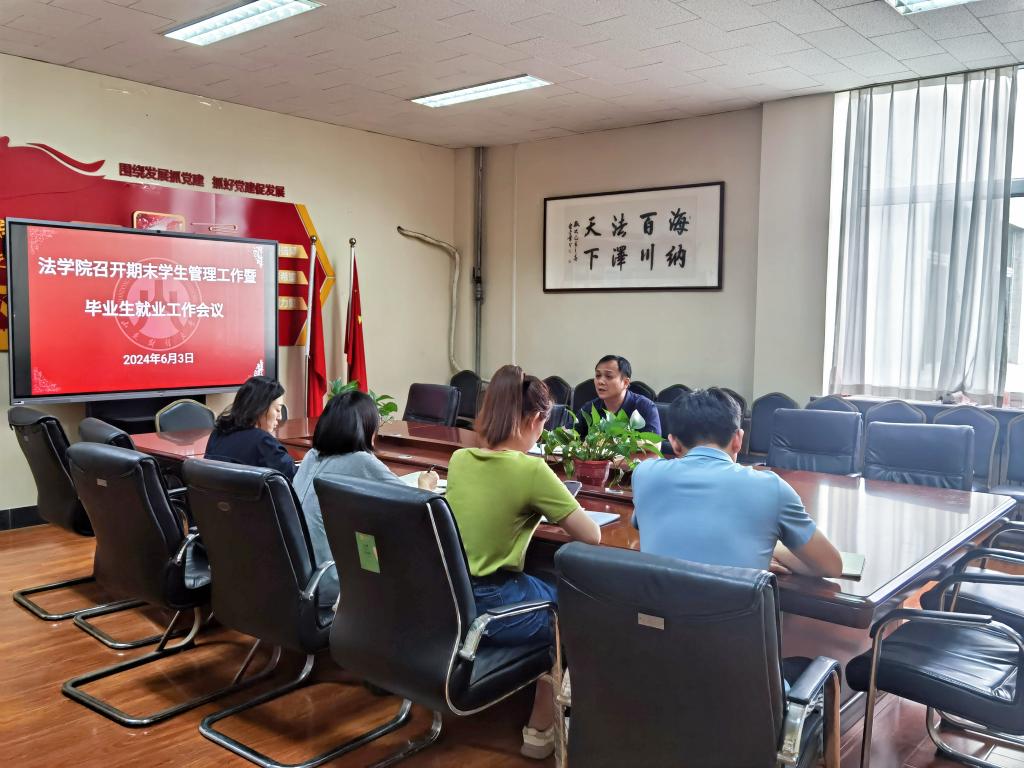 6月3日上午,法学院在燕山校区4号教学楼508会议室召开学生管理工作暨毕业生就业工作会议,学院党委副书记沙林斌及全体辅导员参加会议,会议由党委副书记沙林斌主持。