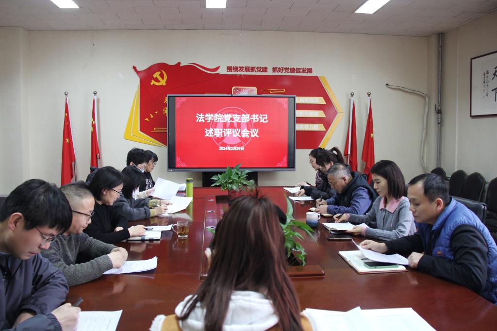 为深入学习贯彻习近平新时代中国特色社会主义思想和党的二十大精神,认真贯彻落实习近平总书记关于党的建设的重要思想,不断提升基层党建工作质量,根据学校有关要求,2月29日下午,法学院党委在燕山校区4508会议室召开2023年度党支部书记述职评议会。党委书记危红,院长赵信会、党委副书记沙林斌以及全体党支部书记、部分党员代表参加会议。会议由沙林斌主持。