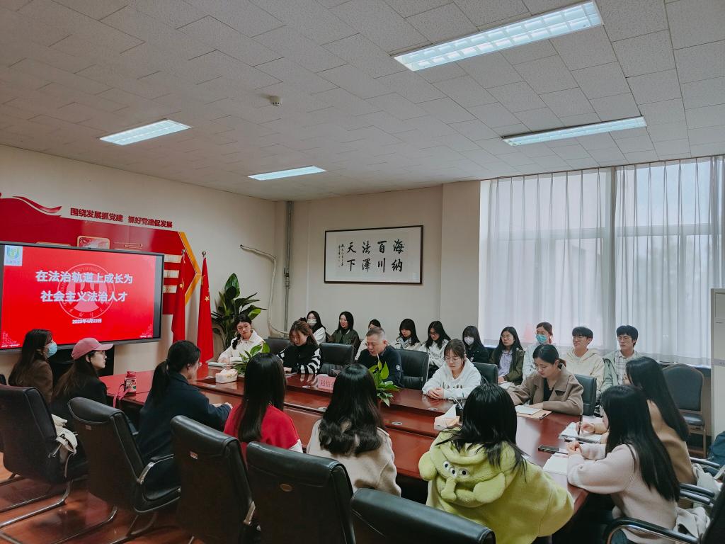 最后,赵信会与参与党课的党员发展对象进行交流讨论,2021级研究生闫润青表示:“下一步,我要强化对党的法治理论的学习,并通过参与学术年会、学术竞赛的方式,提升个人的学术素养与专业能力,争取早日成为合格的法治人才。”2021级本科生蒯文扬说:“现阶段,我要认真学习好法学专业知识,完成好法学专业课程,为成为一名法治人才打牢基础。”其他同学也纷纷表示收获很多,要通过不懈努力,争做新时代合格的法治人才。