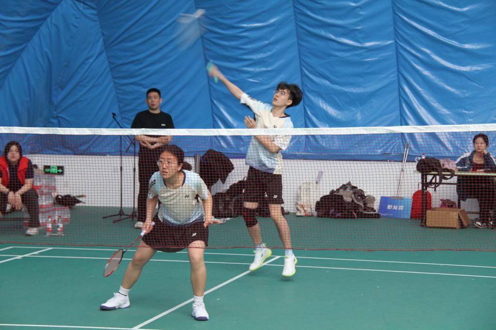 学院在19日的小组赛中以三战三胜,小组第一的好成绩出线,顺利晋级20日的决赛赛段。决赛赛场上,刘洪与周晋同学的师生组合在男双比赛中配合默契,攻守转换行云流水;纪建文与石宪蕊同学的师生组合在女双比赛中,首局面对大比分落后的不利局面,凭借战术调整与默契配合实现绝地反击,最终以30:28上演逆转;单打项目中,赵晗老师步伐灵动,在大比分落后7分的战况下仍力挽狂澜、绝地反超,张政同学以凌厉劈杀与精准控球展现个人实力,每一次跃起扣杀都激起在场观众的连声喝彩;混双比赛中,我院陈嘉睿和范俐洁同学作为最后一队出场队员,在鏖战的最后关头贡献一记精彩绝杀。比赛中这些扣人心弦的时刻,将竞技体育展现出的拼搏与顽强定格为赛场上的永恒记忆。