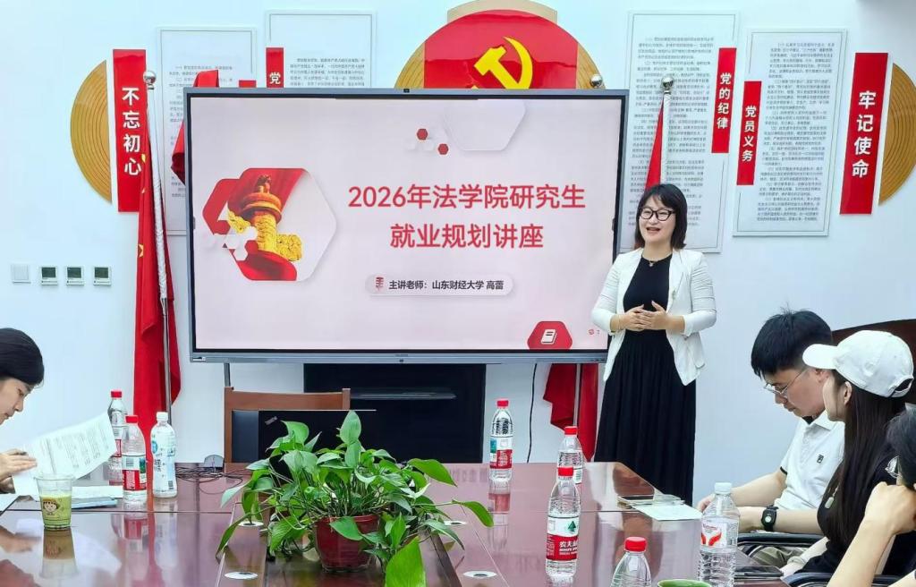 首先,高蕾基于2025年全省考公报录情况,参考选调生、事业编、“三支一扶”、国央企及律师事务所等多渠道招聘动态,结合法学专业的学科特点和从业优势,全面分析了近年来的就业形势。针对备受关注的公务员考试,她强调同学们应在备考过程中提升自我认知,深入了解自身优势与兴趣所在,在结合行业动态与岗位需求的基础上精准定位目标岗位。此外,她还引导法科学子拓宽求职视野,建议同学们进行多赛道、全方位的就业准备。