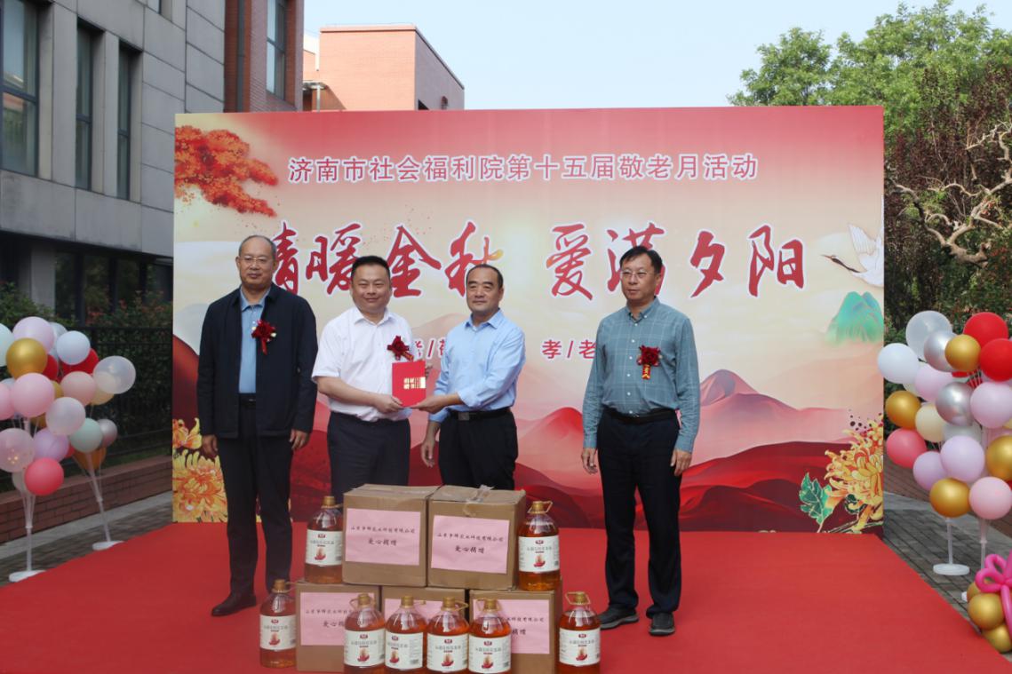 活动现场还举行了暖心捐赠仪式。山东省争鲜农业科技有限公司董事长王栋心系敬老事业,代表法学院向济南市社会福利院捐赠了公司生产的“莘花”花生油20桶,以实际行动为老人们的节日生活增添温暖。福利院为包括王栋先生在内的爱心单位及个人颁发“最美爱心单位”“最美爱心人士”荣誉杯,感谢社会力量对养老事业的无私奉献。