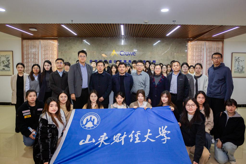 国富集团(山东)财税咨询服务板块总经理孙泽超、副总经理王栋等人全程热情接待。师生一行首先实地参观了集团展厅与办公场所,直观了解了集团作为现代咨询服务行业引领者的业务布局、核心资质。座谈交流伊始,孙泽超发表了热情洋溢的致辞,对我校师生到访表达了真挚的欢迎;师生共同观看了国富集团(山东)宣传片,全面感受企业发展历程与行业影响力。