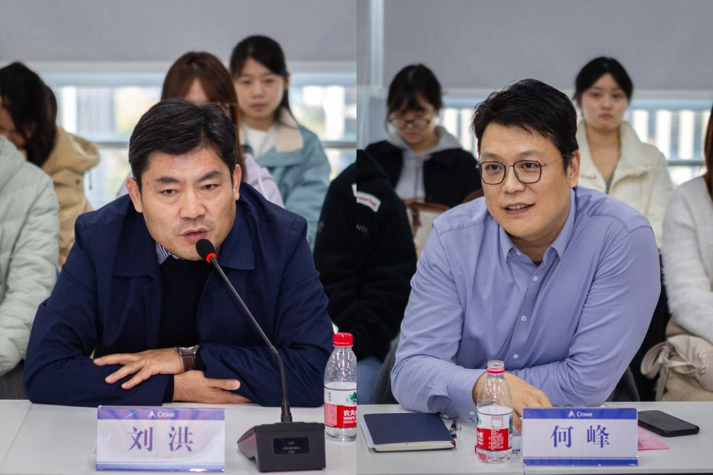 在核心交流环节,王栋详细介绍了集团“财税咨询、企业内控、风险管理”三大核心业务及未来发展规划,重点强调集团亟需兼具法律专业素养与商业思维的复合型人才,并热情邀约各位同学加入国富集团(山东),收获更美好的职业未来。随后,在国富集团(山东)工作的三位山东财经大学校友结合自身职业经历分享职场感悟,为学弟学妹们提供了宝贵的行业经验与成长建议。