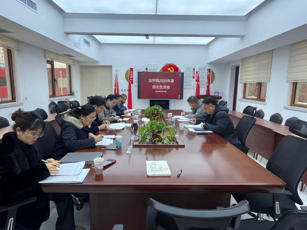1月19日上午,法学院党委召开2025年度民主生活会,深入学习贯彻习近平新时代中国特色社会主义思想,全面贯彻落实党的二十届四中全会精神,锲而不舍落实中央八项规定精神,为学院高质量发展打牢坚实基础。党委学生工作部副部长周广春、管理科学与工程学院正科级专职组织员满宠到会指导。学院党委书记刘洪主持会议,学院党委领导班子成员参加会议。