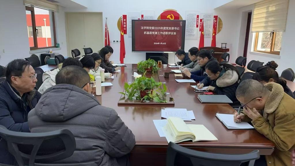 为深入学习贯彻习近平新时代中国特色社会主义思想,贯彻落实党的二十大和二十届历次全会精神,进一步压紧压实学院基层党支部书记抓基层党建工作第一责任人责任,推动学院党建工作重点任务落实,1月20日下午,法学院党委在燕山校区6号楼325会议室召开了2025年度党支部书记抓基层党建述职评议会。会议由党委书记刘洪主持,学院全体班子成员及全体支部书记参加会议。