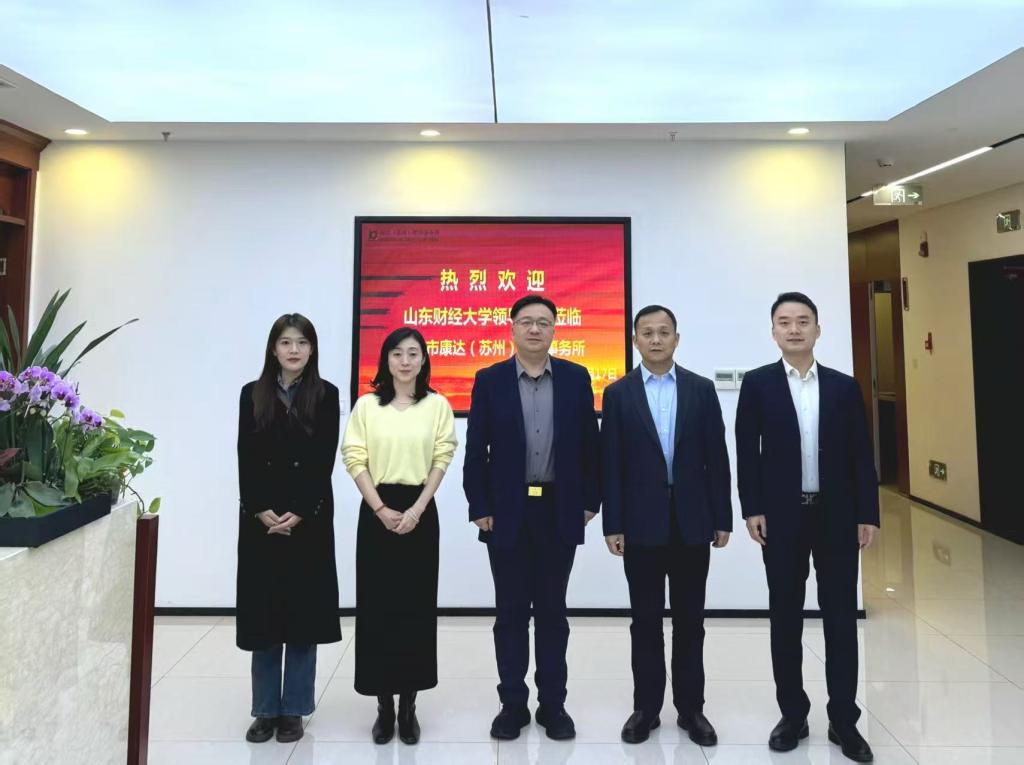 2026年1月18日至1月20,山东财经大学学生工作部副部长周广春、法学院党委副书记沙林斌一行赴北京市康达(苏州)律师事务所开展访企拓岗专项调研走访。