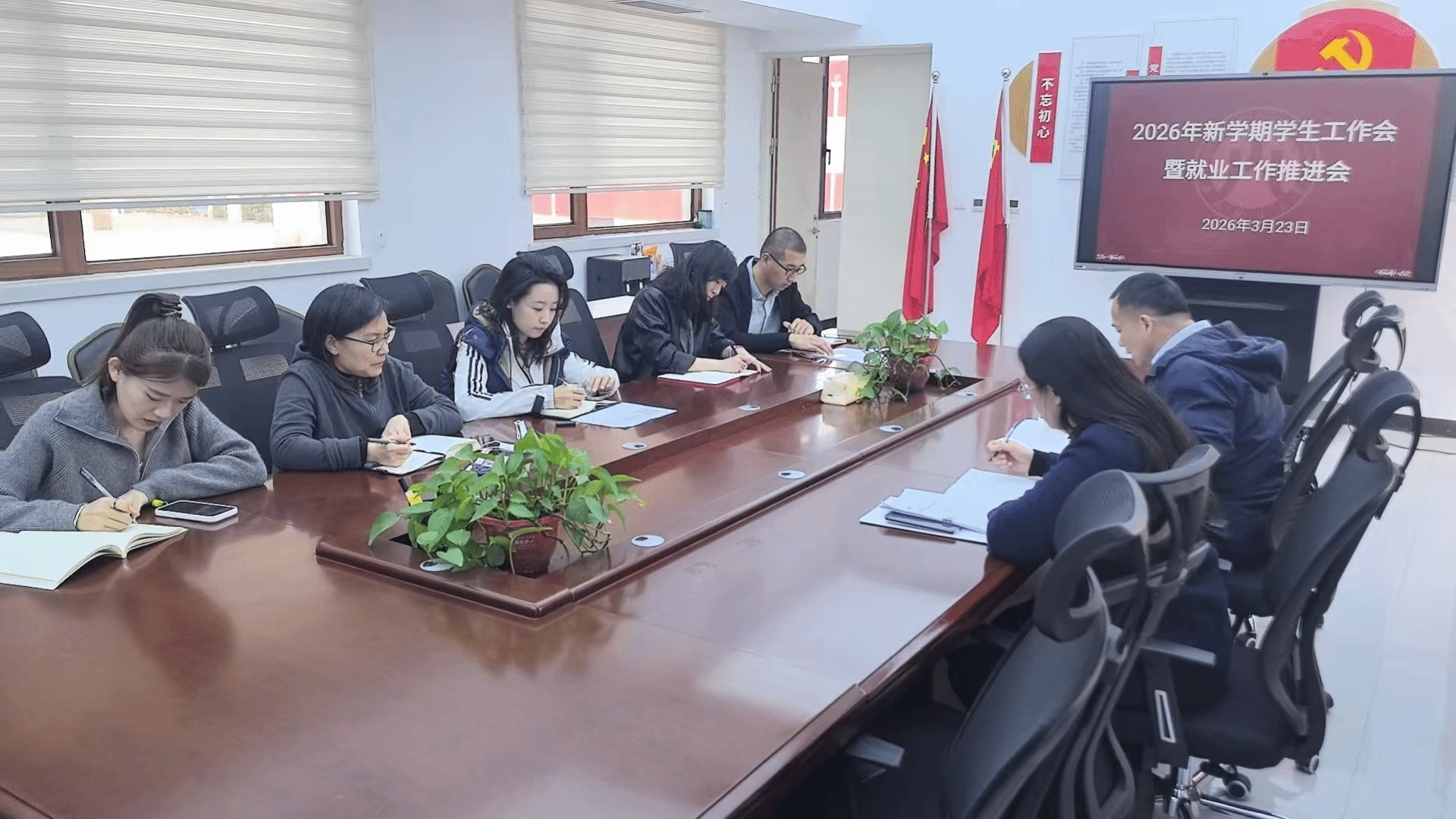 为了扎实做好新学期各项工作,3月23日法学院召开2026年新学期学生工作暨就业工作推进会议,学院党委副书记陶晓华、沙林斌和全体辅导员参加。