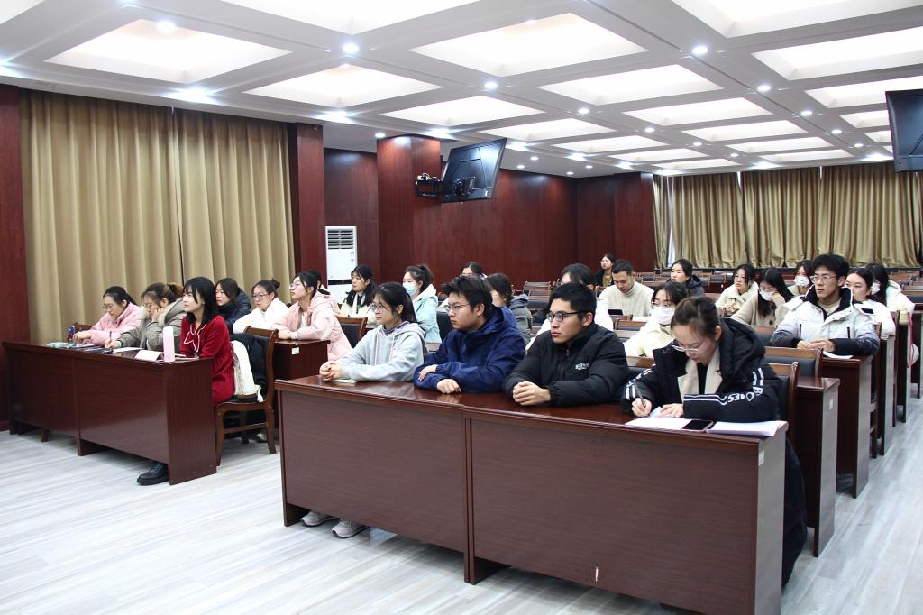 会上,为学生宣讲团成员颁发聘书。代表教师梁晓俭教授和2022级硕士生张艺轩作了重点发言。